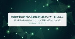スクール紹介 武藤孝幸の評判と高速資産形成セミナーの口コミ|延べ受講人数3,600名のスクールで受講生が語るリアルな声 武藤孝幸の評判・高速資産形成セミナーの口コミを受講生アンケート389名とGoogle口コミ1,083件のデータで徹底検証。ポジティブな声だけでなく改善要望もありのまま紹介します。 Read More »