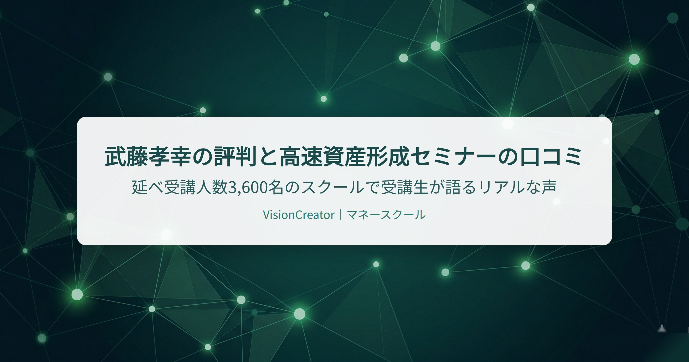 投資スクール選びで、「この講師は本当に信頼できるのか」と迷われていませんか?武藤孝幸は、多くの受講生が経済的自由を実現するための指導を行ってきた講師です。当記事では、武藤孝幸の経歴・実績・指導理念を、具体的なデータと受講生の声から徹底解説いたします。